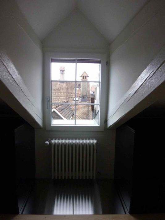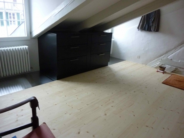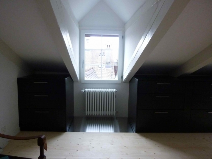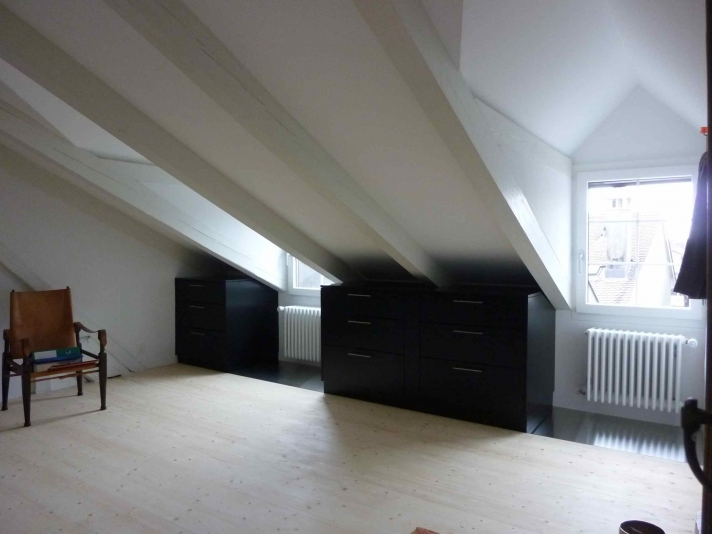 Renovation des Dachgeschosses eines Altstadthauses in Murten. Neue Böden und Schrank-einbauten