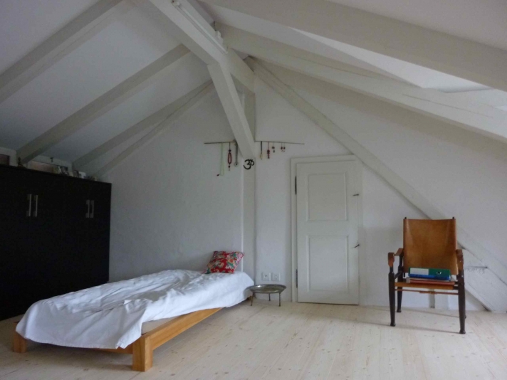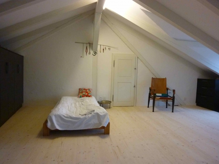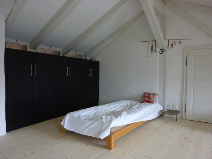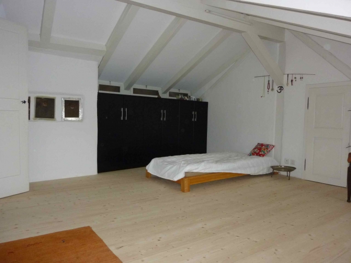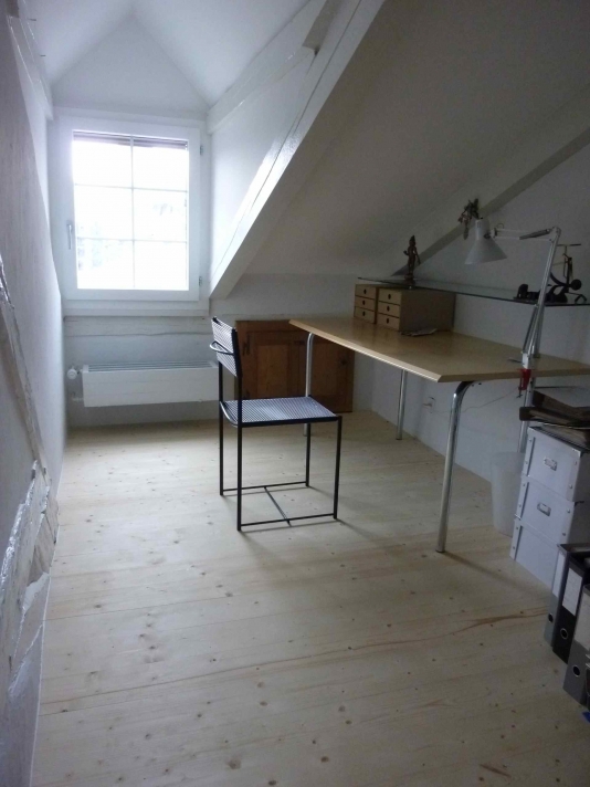 Neue Tannenholzriemenböden an Stelle der bestehenden Spanplattenböden mit Teppichen. Schrankeinbauten in den Dachschrägen.