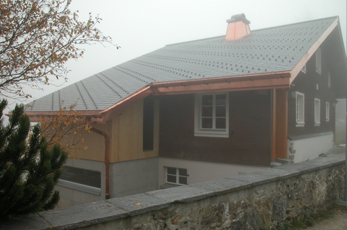 Ferienhaus Solcà-Dubler, Ringstrasse 94, Stoos / SZ: Erneuerung der Einliegerwohnung, Anbau eines Windfangs und darauf aufgebautem Geräteraum.