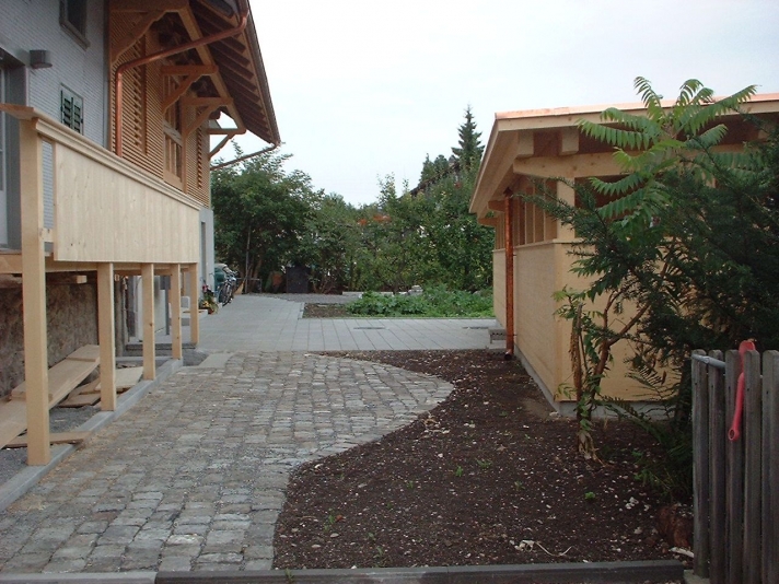 Nebst der Fassadengestaltung, und den koordinativen Fähigkeiten (Erbengemeinschaft-Denkmalpflege-Bauausführung) war das Schaffen von gemeinschaftlichen Bereichen und Rück-zugsmöglichkeiten auf engem Raum gefragt. Jede Einheit hat präzis zugeordnete Aussenräume, in denen man sich auch in Zeiten mit geringerem Gemeinschaftsgedanken, entfalten kann.