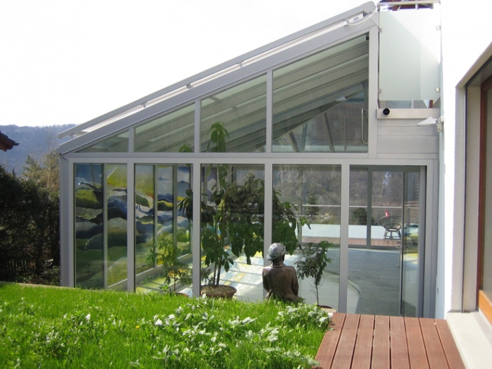 Konventionelles Einfamilienhaus, Baujahr 1986, in einer Basler Vorortsgemeinde (Laufental). Das bestehende Einfamilienhaus soll durch einen Wintergarten mit eingebautem Schwimmbad erweitert werden.