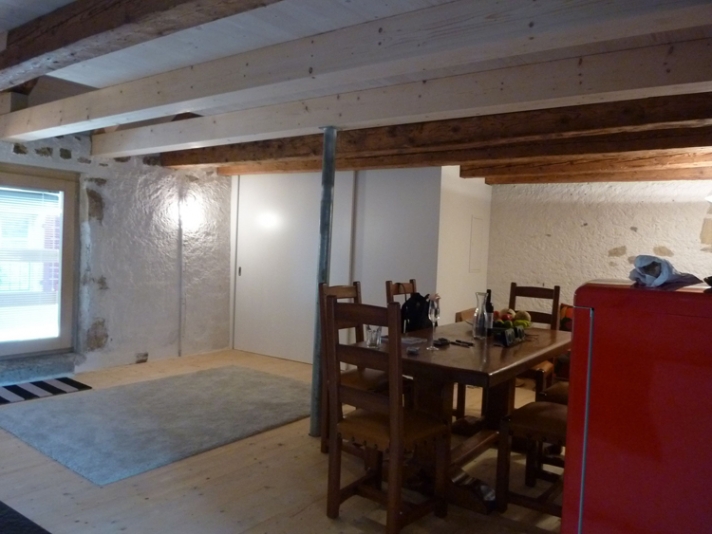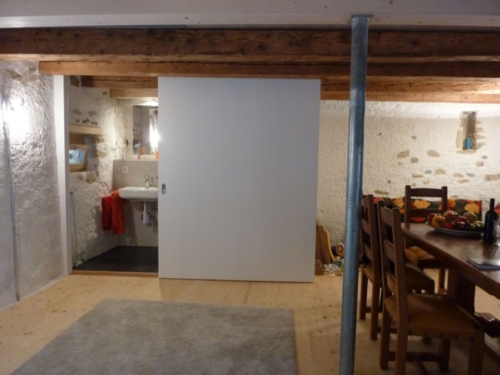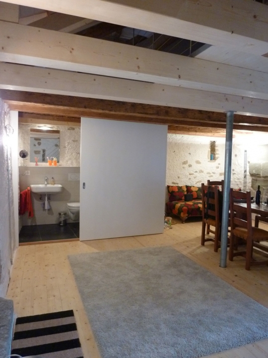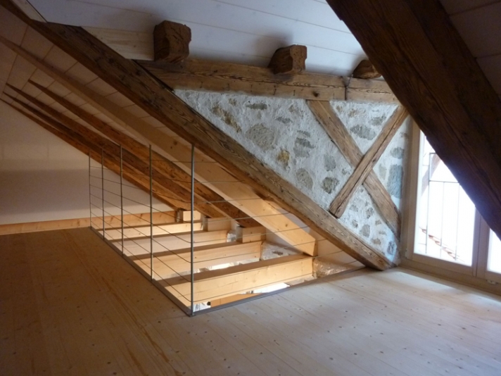 Einbau einer Infrastruktur für die Sommernutzung als Ferienwohnung, des ehemaligen Speichergebäudes am Speichergässlein in Murten. Das Gebäude ist an die Wehrmauer angebaut und besitzt einen Durchgang zum Stadtgraben hin, wo sich ein wunderschöner Garten befindet.